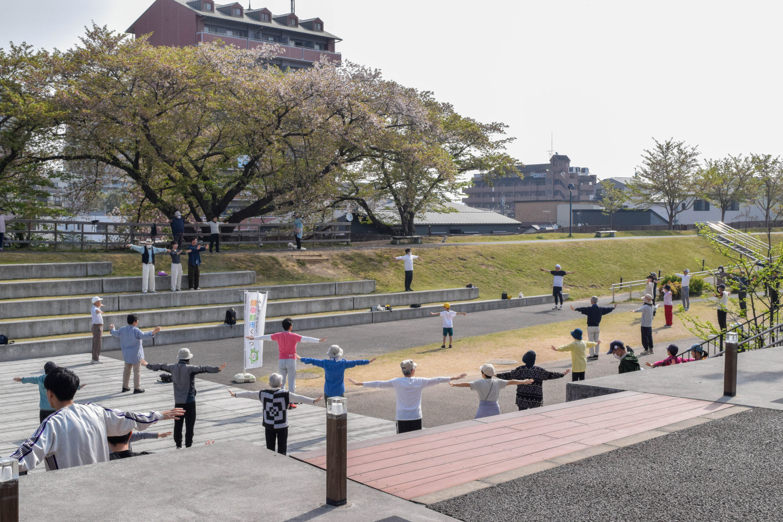 日頃より草津川跡地川公園で親しまれているラジオ体操プログラム。ラジオ体操で体をほぐした後は、「健康」についてお話ししましょう◎ラジオ体操を楽しみ、みんなで健幸になりましょう◯