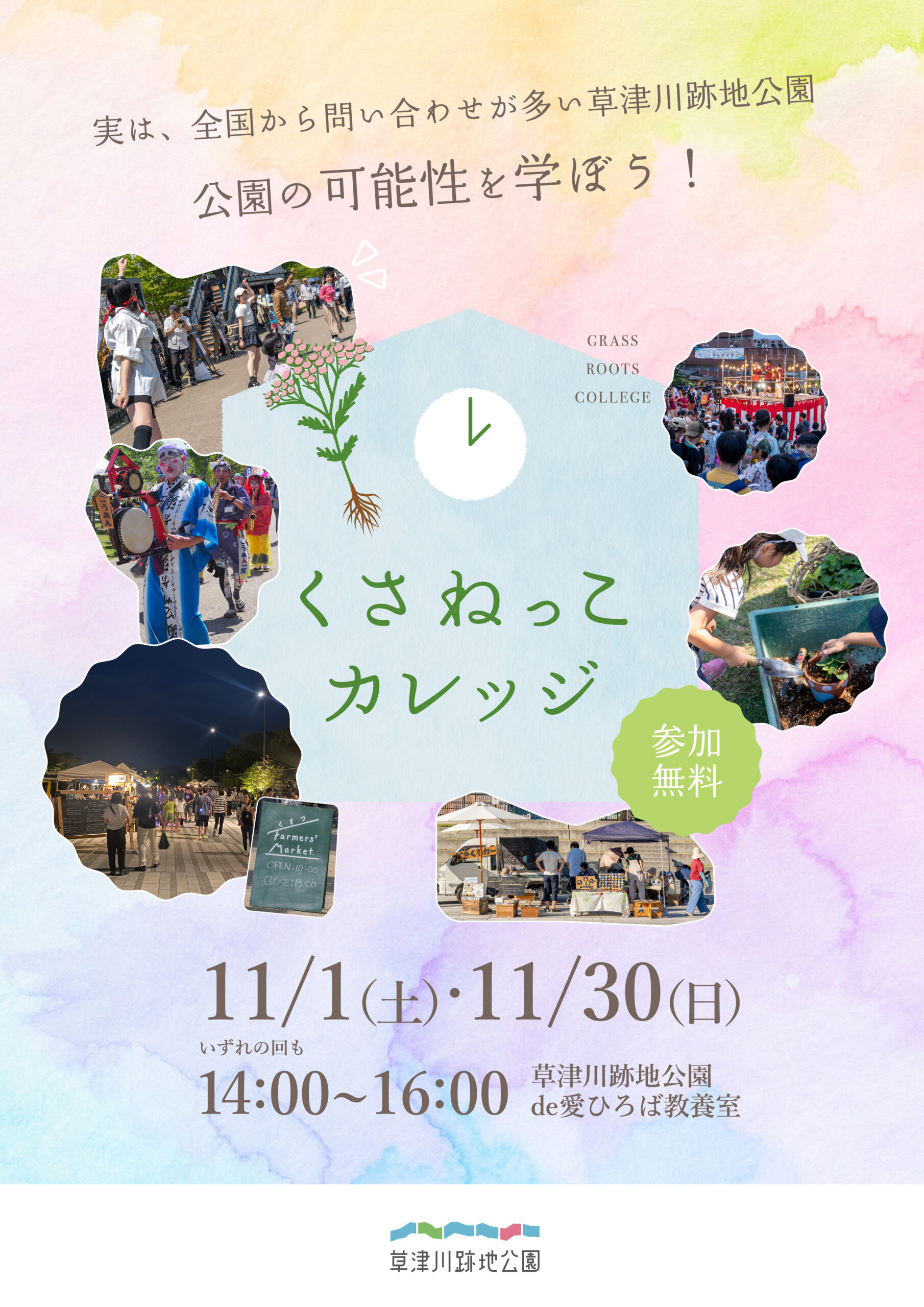 #くさねっこ #くさねっこプログラム #草津川跡地公園 #市民活動 #公園 #チョークアート #大正琴 #ローズフェスタ