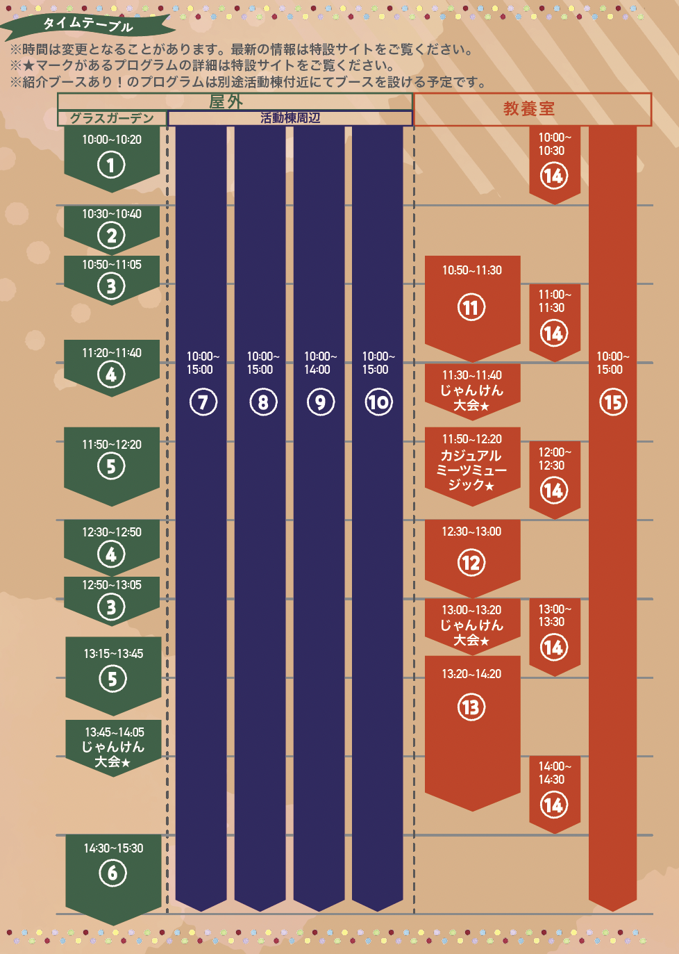 プログラム名や場所、内容などは変更になることがあります。