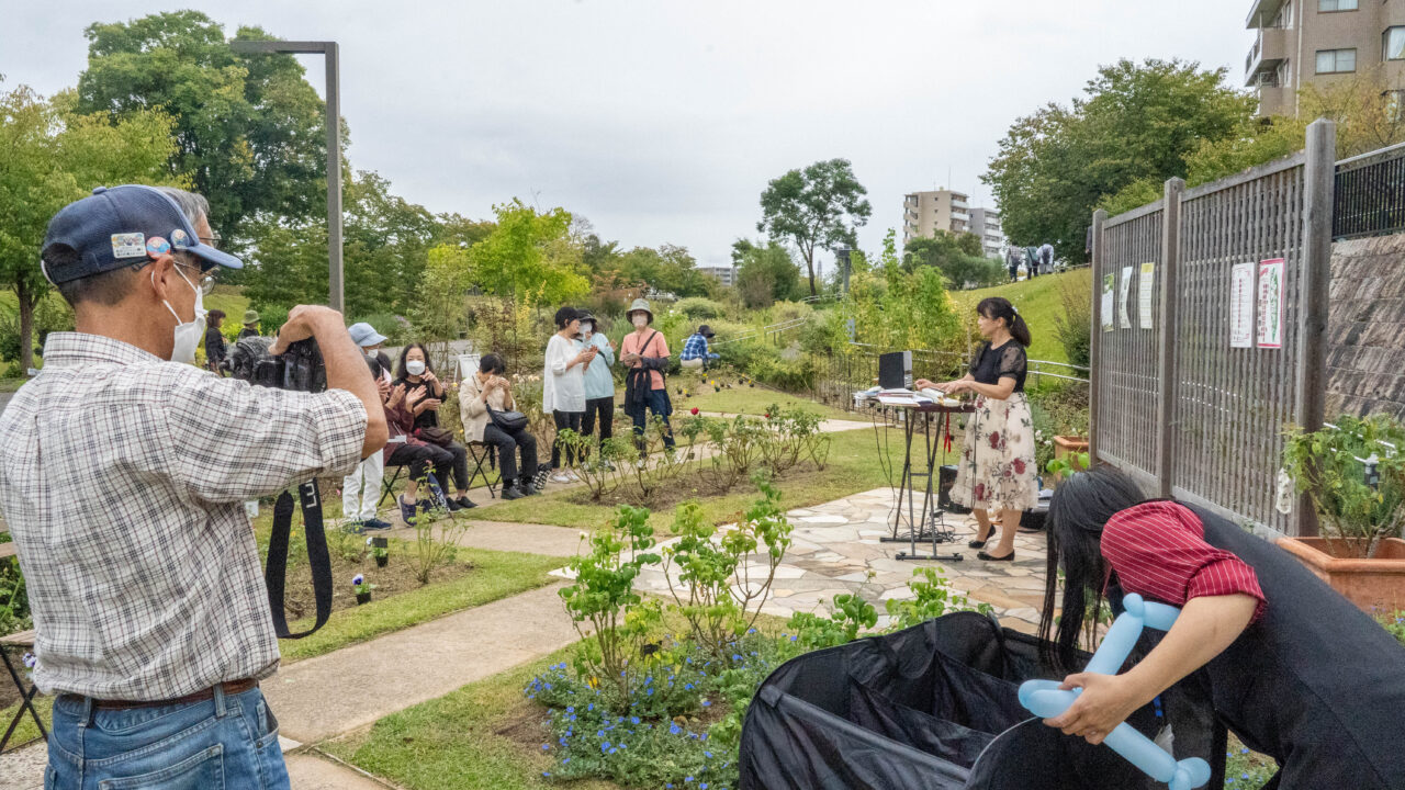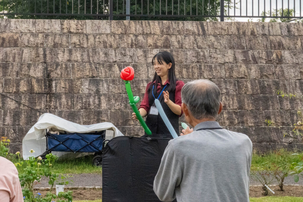 花に囲まれながら大正琴の音色とバルーンアートショーのコラボレーションが楽しめるプログラム。歌のタイトルや歌詞の内容からそれにまつわるものをバルーンで作るといったパフォーマンスを実施されました⚪︎